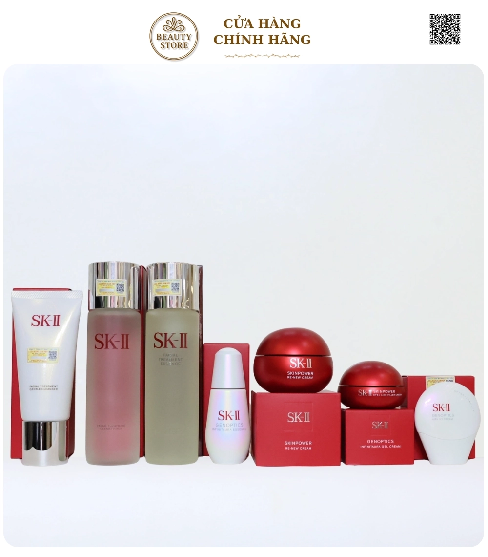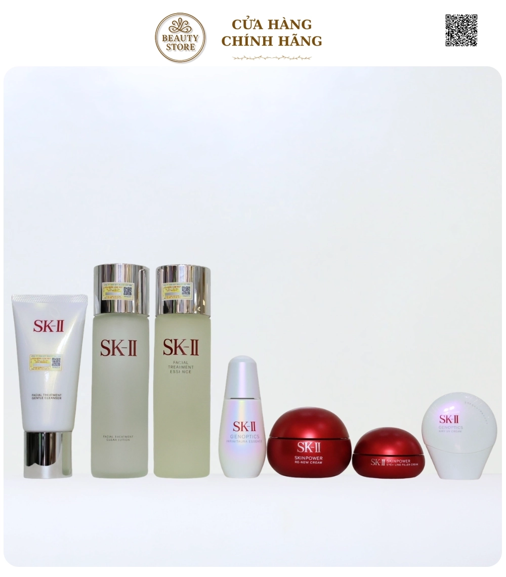 Bộ 7 món cao cấp từ SK-II là chu trình chăm sóc da toàn diện từ làm sạch – dưỡng sáng – chống lão hóa – bảo vệ da ban ngày. Sự kết hợp giữa dòng GenOptics (dưỡng trắng, tăng độ rạng rỡ) và SkinPower (trẻ hóa, tăng đàn hồi) mang lại hiệu quả kép: da sáng hơn – săn chắc hơn – mịn màng hơn theo thời gian.