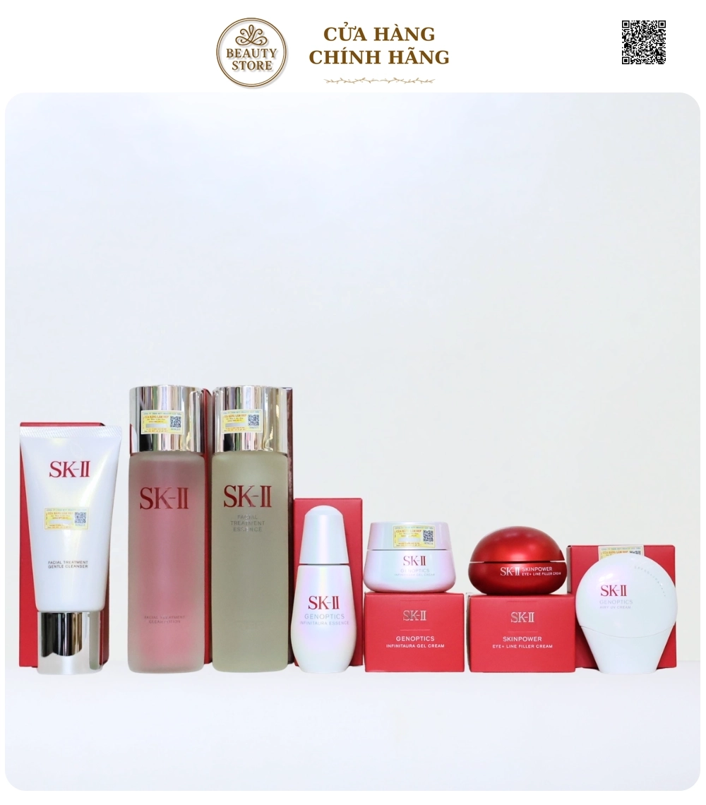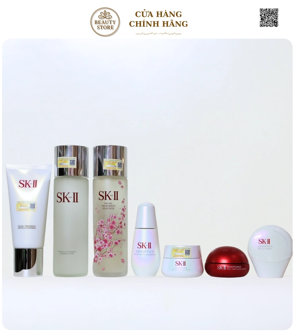 Bộ 7 món cao cấp từ SK-II là giải pháp chăm sóc da chuyên sâu giúp dưỡng trắng – cấp ẩm – tăng độ rạng rỡ tự nhiên. Sự kết hợp giữa tinh chất GenOptics InfinitAura Essence và kem dưỡng GenOptics Infinitaura Gel Cream giúp cải thiện làn da xỉn màu, mang lại hiệu quả sáng da – đều màu – căng mịn.