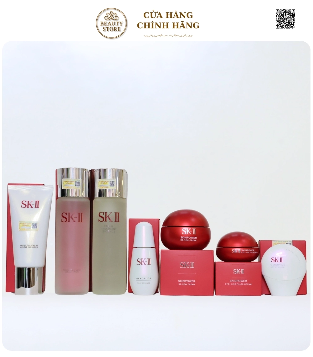 Bộ 7 món cao cấp từ SK-II là giải pháp chăm sóc da chuyên sâu cho làn da nám, tàn nhang và lão hóa. Sự kết hợp giữa tinh chất đặc trị GenOptics Spot Essence và dòng SkinPower giúp tác động kép: làm mờ sắc tố – tái tạo da – tăng độ đàn hồi.