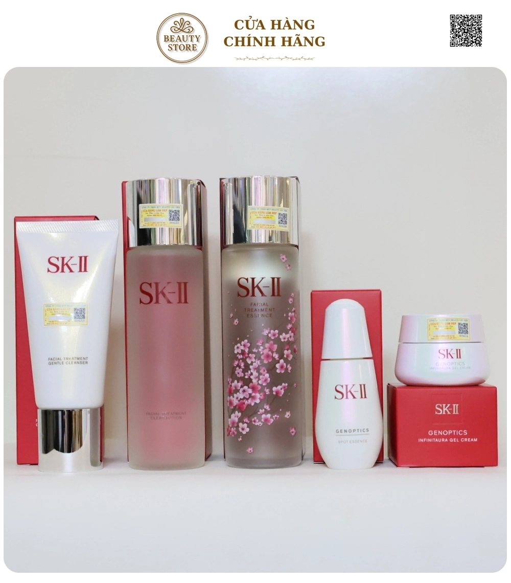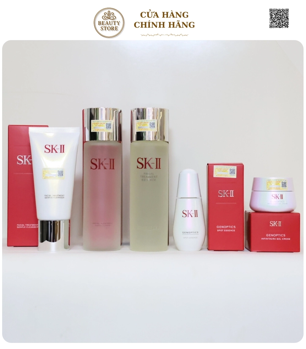 Bộ 5 món cao cấp từ SK-II là giải pháp chuyên sâu dành cho làn da nám, xỉn màu và không đều màu. Sự kết hợp giữa tinh chất đặc trị GenOptics Spot Essence và kem dưỡng GenOptics Infinitaura Gel Cream giúp tác động kép: làm mờ sắc tố – dưỡng sáng – cấp ẩm, mang lại làn da rạng rỡ và trong trẻo hơn từng ngày.