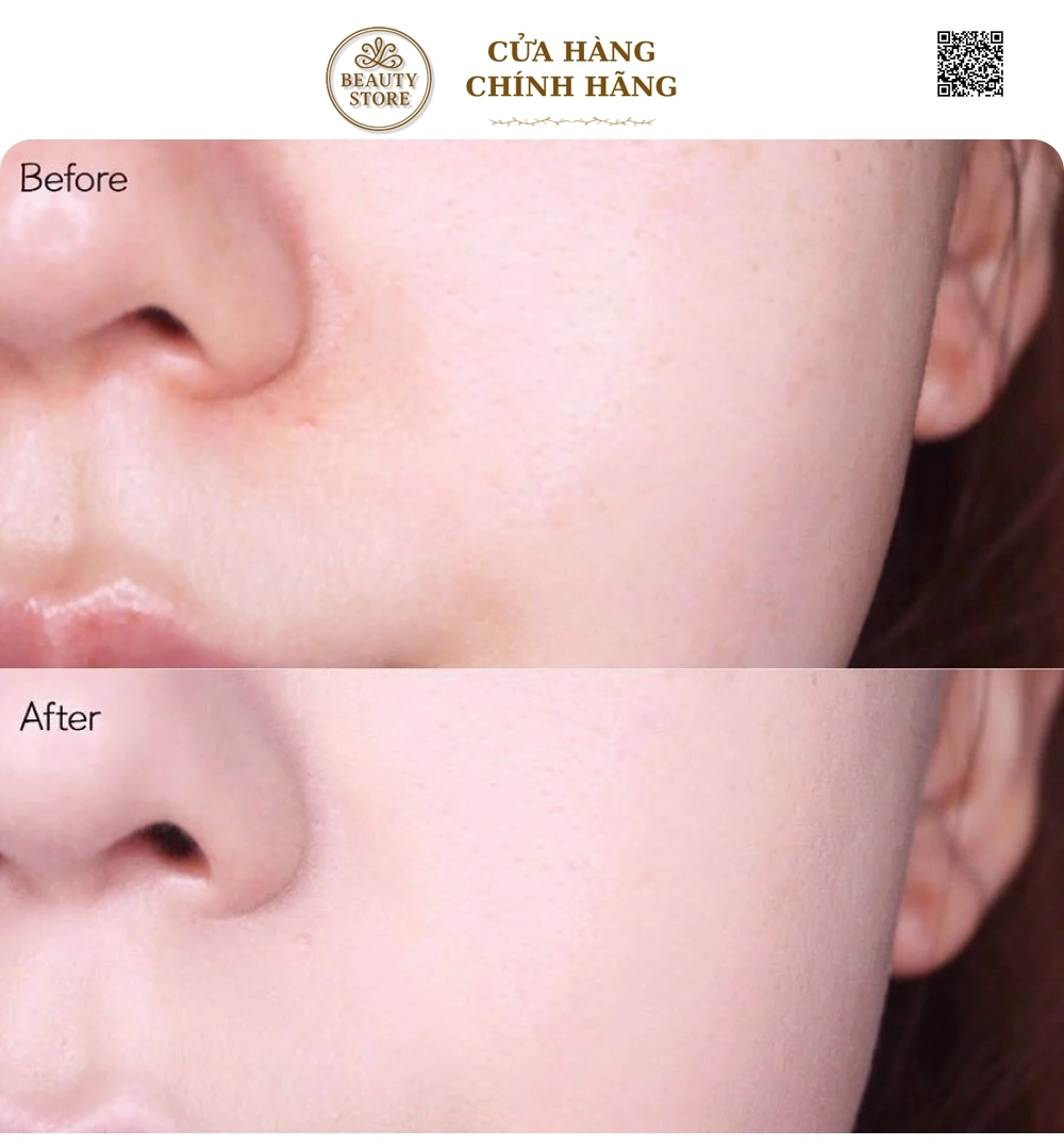 - Tạo lớp nền mịn màng, tự nhiên với hiệu ứng căng bóng, rạng rỡ. - Bảo vệ da toàn diện khỏi tia UV (SPF 22/PA++), ô nhiễm và ánh sáng xanh. - Tăng cường và duy trì độ ẩm cho da mềm mượt suốt cả ngày. - Chứa chiết xuất dầu hoa hồng đen giúp nuôi dưỡng làn da. - Có thể dặm lại nhiều lần trong ngày mà không gây vón cục hay mốc nền.