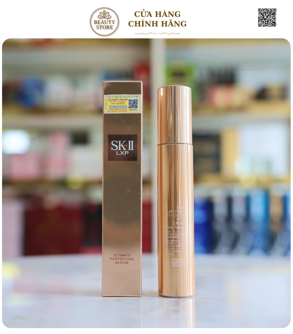- SK-II LXP Ultimate Perfecting Serum là tinh chất dưỡng da cao cấp hàng đầu của thương hiệu SK-II danh tiếng, với hàm lượng cao tinh chất Pitera gấp 200 lần "nước thần", tinh chất siêu cấp này còn chứa thêm chiết xuất rau má và hoa hồng nước Pháp, để làn da bạn được nuôi dưỡng bởi các dưỡng chất từ thiên nhiên, hỗ trợ phục hồi nhanh những tổn thương, trả lại làn da căng mướt, sáng hồng tự nhiên.