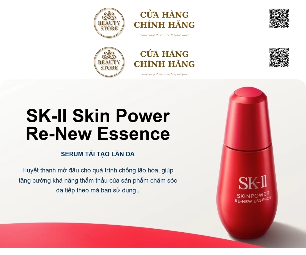 Serum SK-II Skin Power Re-New Essence là sản phẩm chống lão hóa cao cấp đến từ thương hiệu Nhật Bản SK-II, nổi tiếng với hơn 40 năm nghiên cứu về độ săn chắc và trẻ hóa làn da. Sản phẩm chứa công thức độc quyền Pitera™ cùng nhiều hoạt chất dưỡng da chuyên sâu, giúp tái tạo sức mạnh làn da, cải thiện độ đàn hồi, cấp ẩm đa tầng và làm mờ nếp nhăn chỉ sau vài tuần sử dụng.