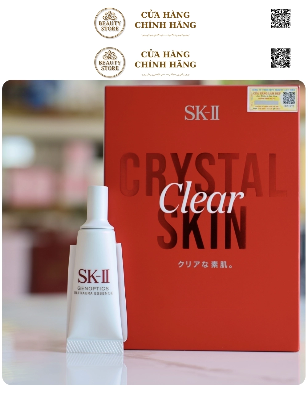 - Serum trắng da trẻ hóa SK-II Genoptics Ultraura Essence 10ml: Là sản phẩm trắng da mới nhất của nhà SK2, có nhiều thành phần cải tiến, làm trắng mạnh mẽ hơn, nhưng đi kèm phục hồi, trẻ hóa làn da của bạn.