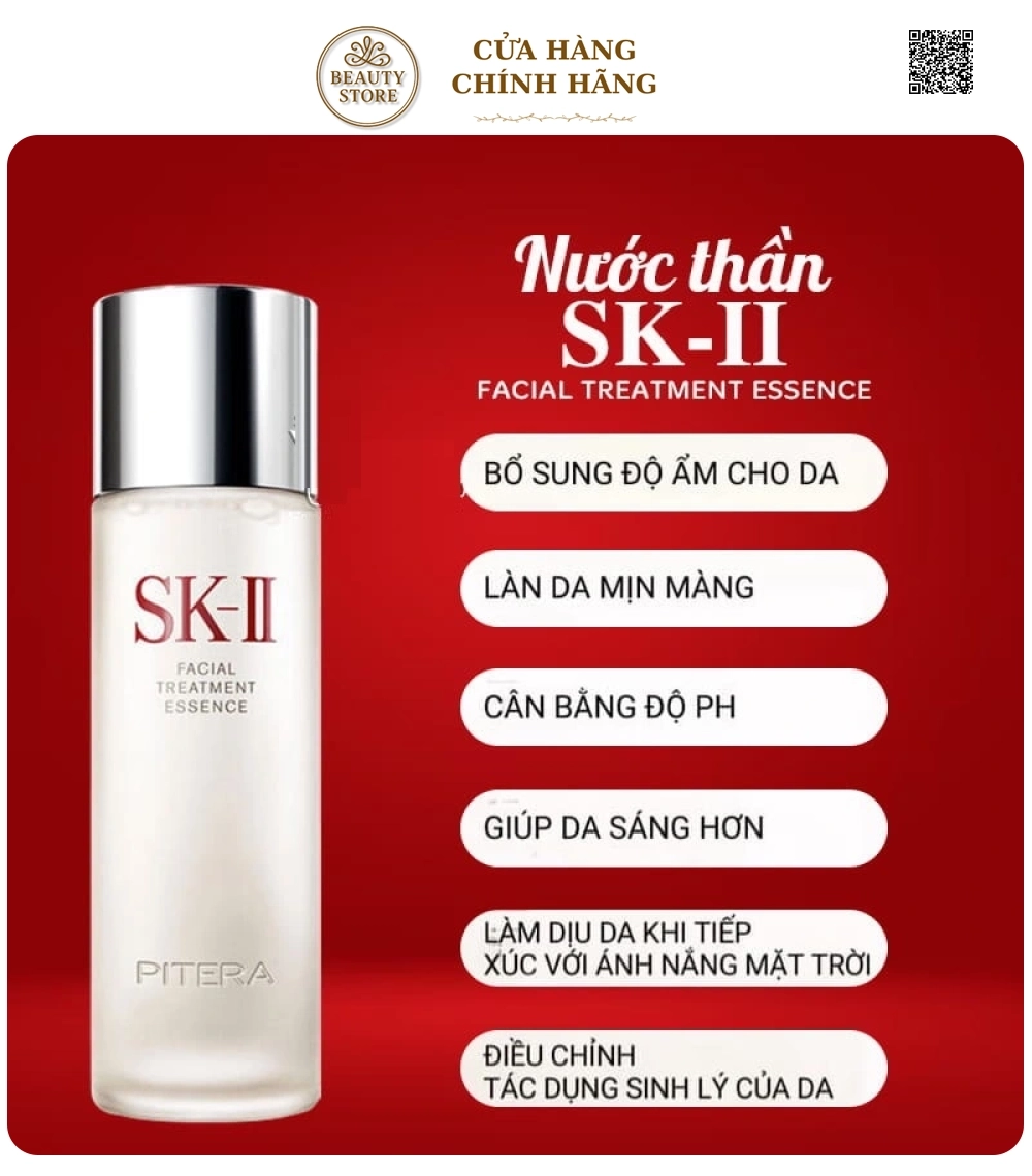 SK-II Facial Treatment Essence là sản phẩm nước dưỡng ẩm cao cấp bán chạy nhất của thương hiệu SK-II, được mệnh danh là “nước thần” nhờ khả năng mang lại làn da trong trẻo như pha lê. Mỗi chai chứa hơn 90% PITERA™ – thành phần độc quyền giàu vitamin, amino acid và khoáng chất, giúp kích thích quá trình tái tạo da, phục hồi và chống lão hóa từ sâu bên trong.