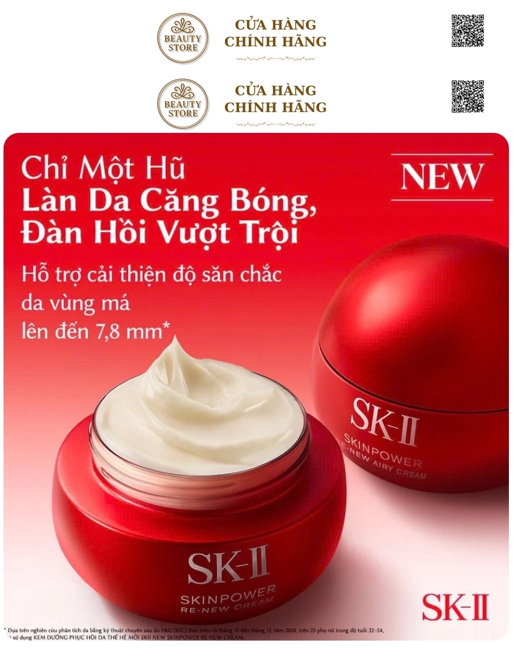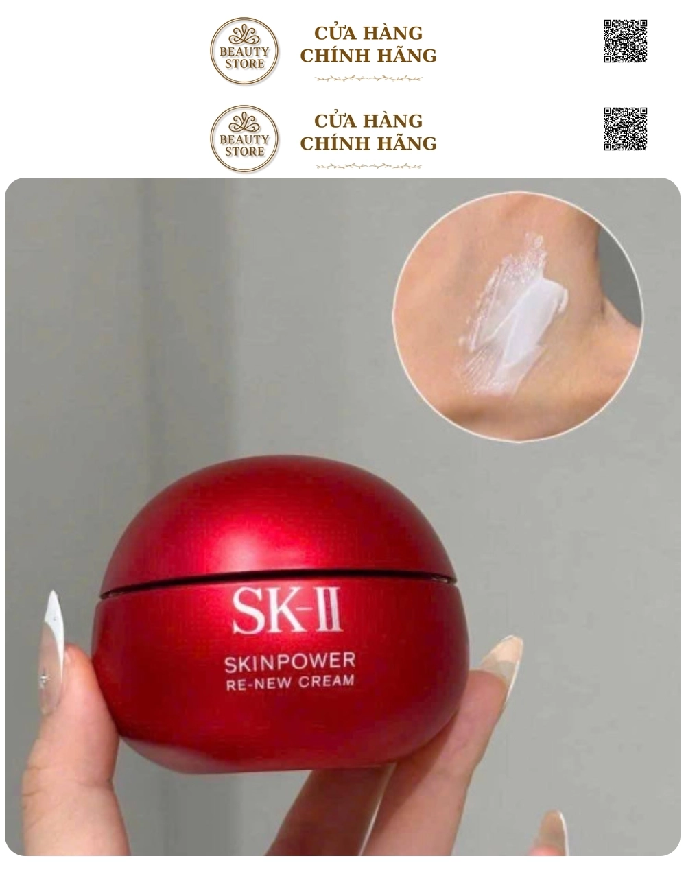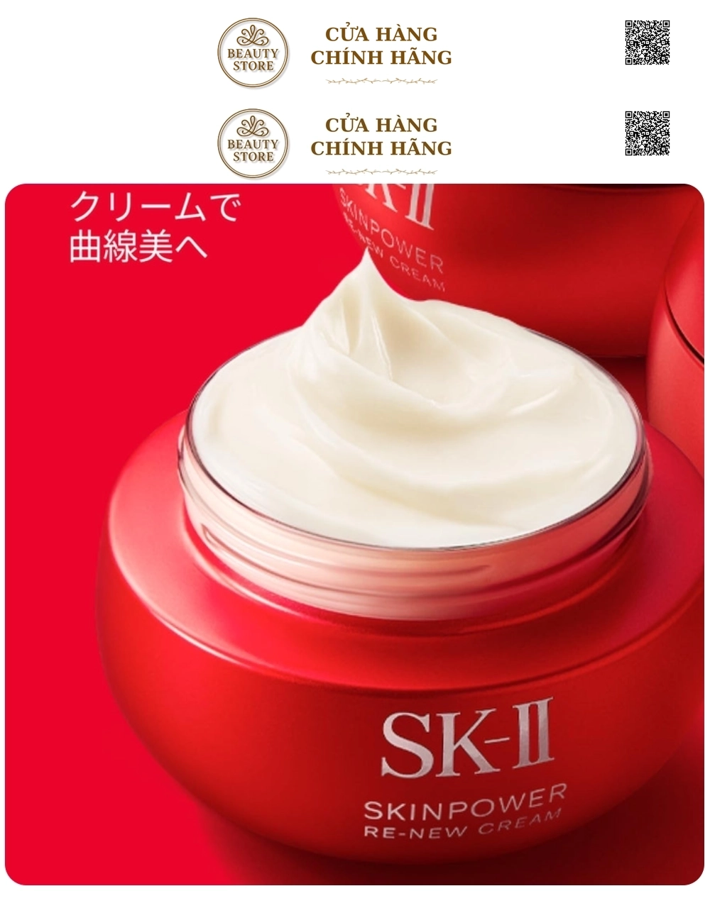 SK-II Skinpower Re-New Cream là dòng kem dưỡng chống lão hóa nâng cấp của SK-II, tập trung cải thiện độ săn chắc, đàn hồi, làm đầy da và giảm nếp nhăn nhỏ, mang lại làn da căng bóng, mịn màng nhờ kết hợp độc đáo giữaPITERA, chiết xuất rễ mẫu đơn, và các thành phần chống oxy hóa, giúp trẻ hóa từ sâu bên trong, thích hợp cho mọi loại da và lứa tuổi.