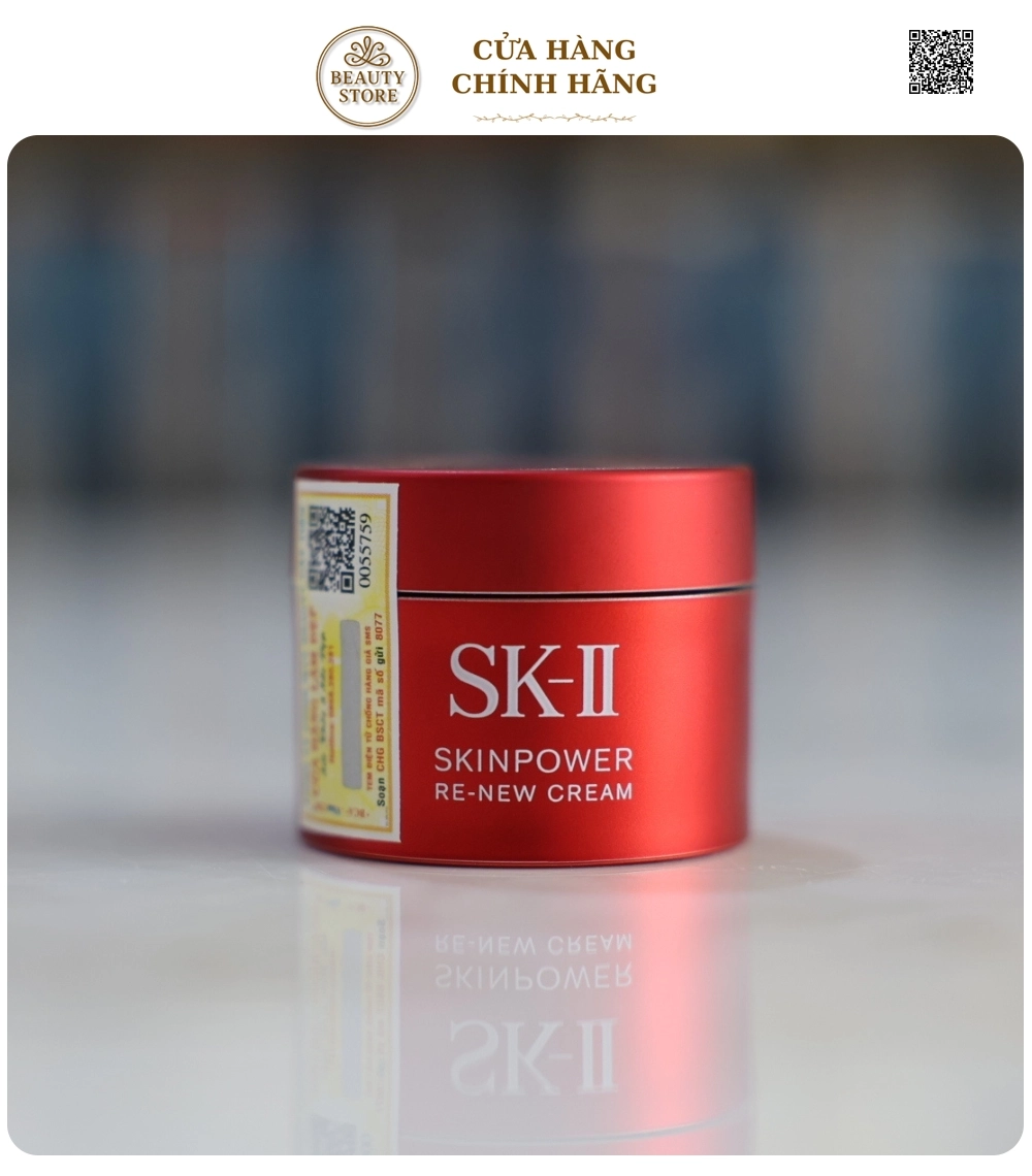 SK-II Skinpower Re-New Cream là dòng kem dưỡng chống lão hóa nâng cấp của SK-II, tập trung cải thiện độ săn chắc, đàn hồi, làm đầy da và giảm nếp nhăn nhỏ, mang lại làn da căng bóng, mịn màng nhờ kết hợp độc đáo giữaPITERA, chiết xuất rễ mẫu đơn, và các thành phần chống oxy hóa, giúp trẻ hóa từ sâu bên trong, thích hợp cho mọi loại da và lứa tuổi.