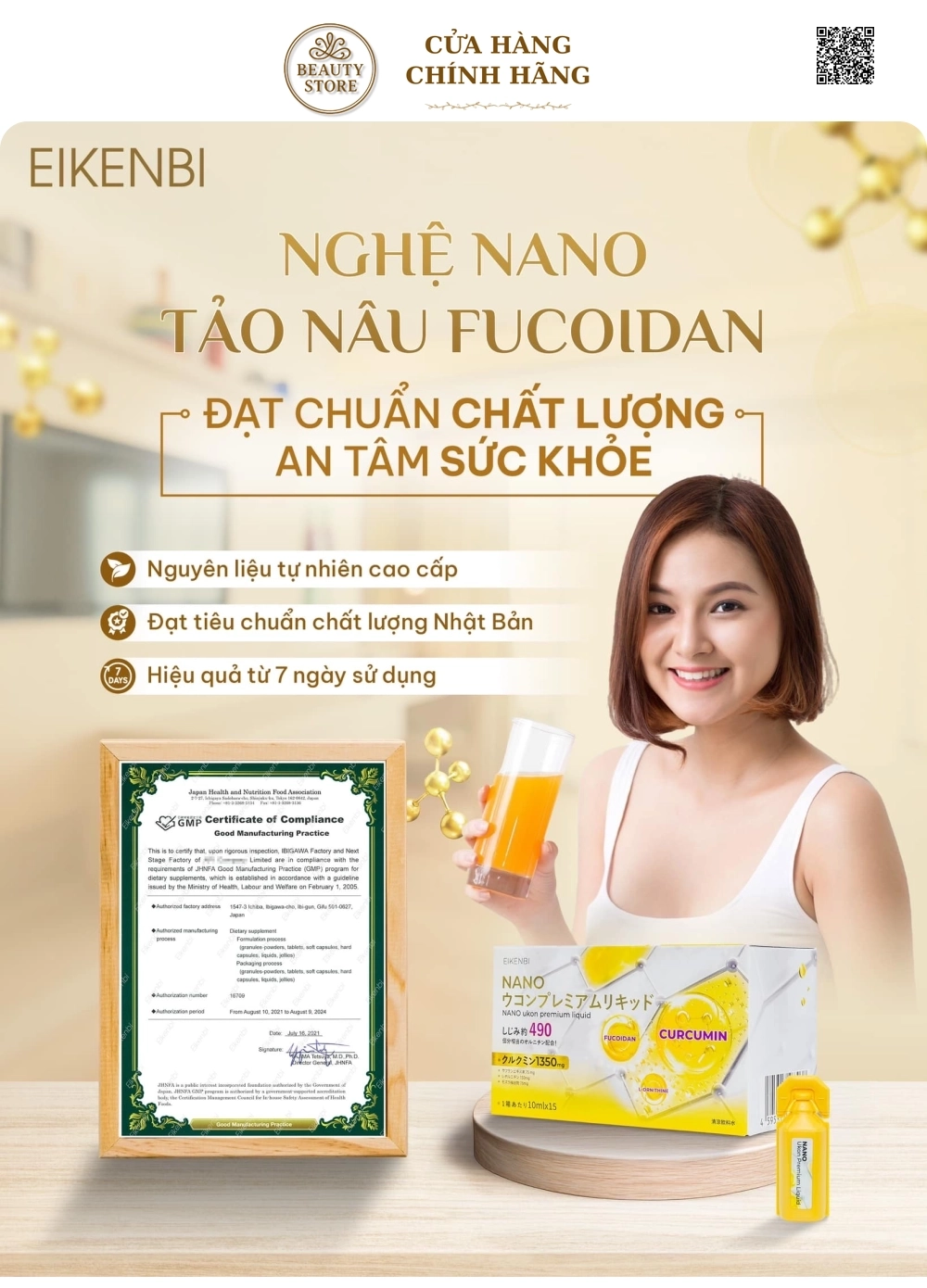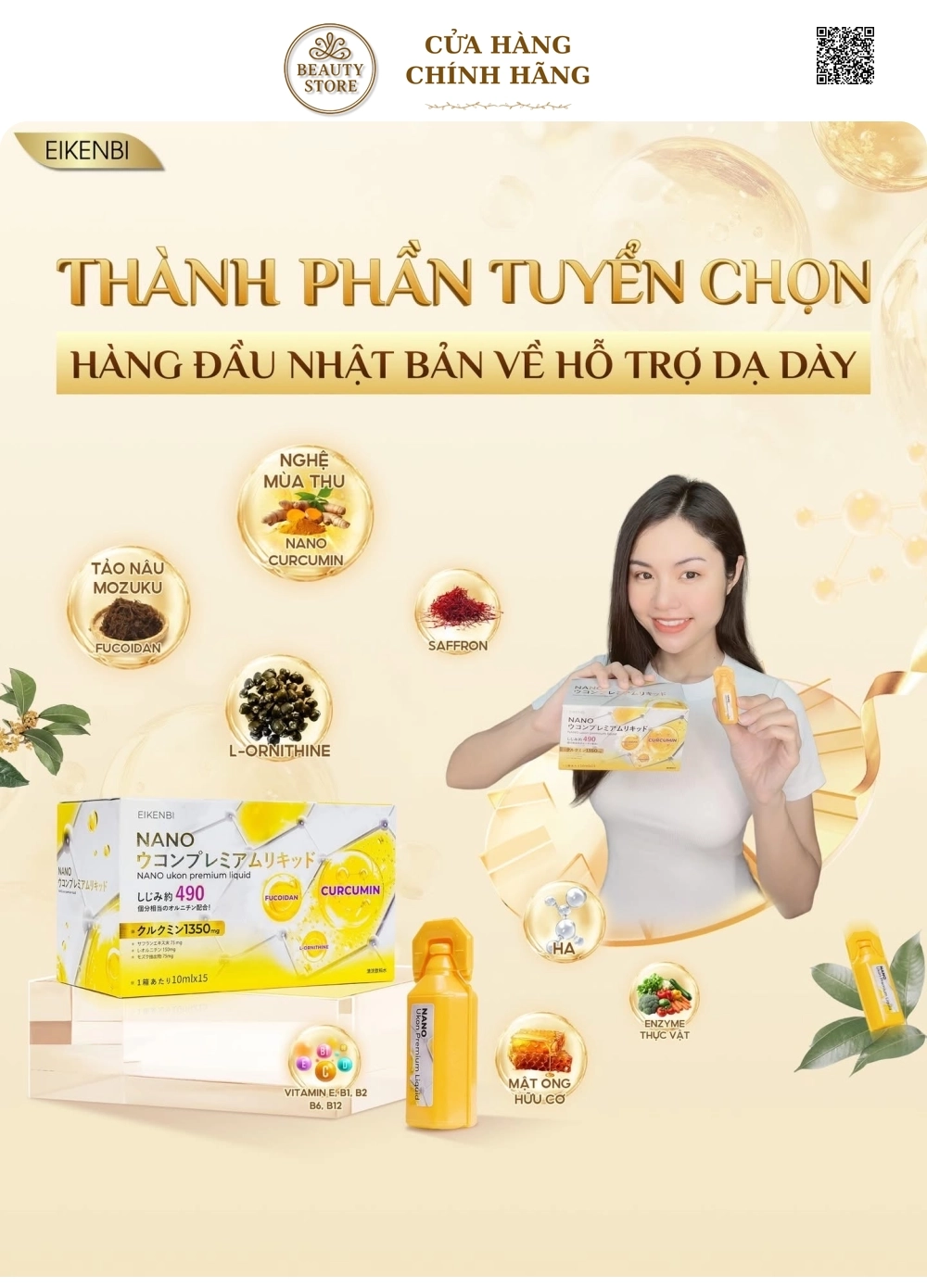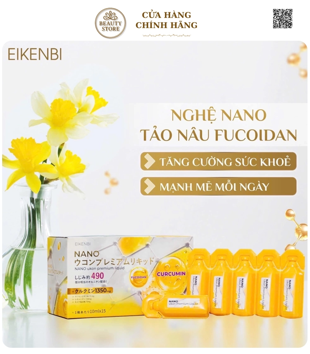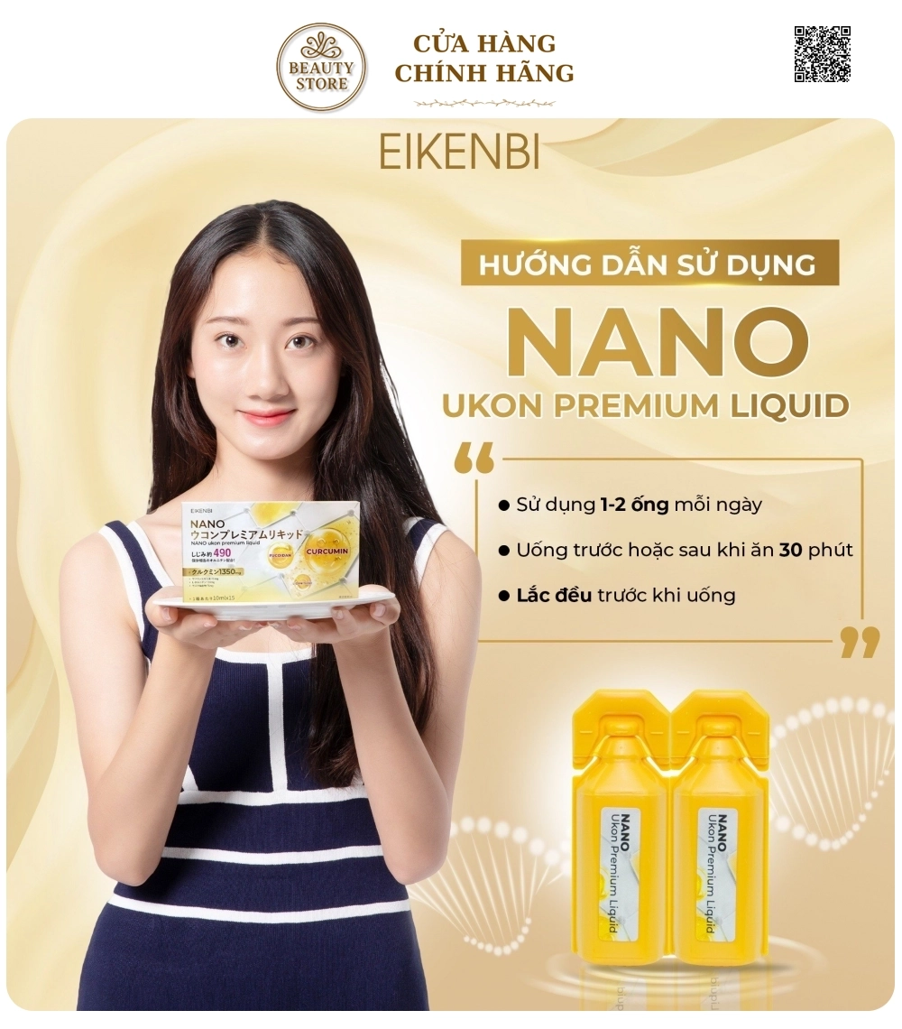Tại hệ thống cửa hàng làm đẹp, Tinh Nghệ Eikenbi Nano Ukon Premium Liquid có giá:1.280.000 d/hộp 15 ống .