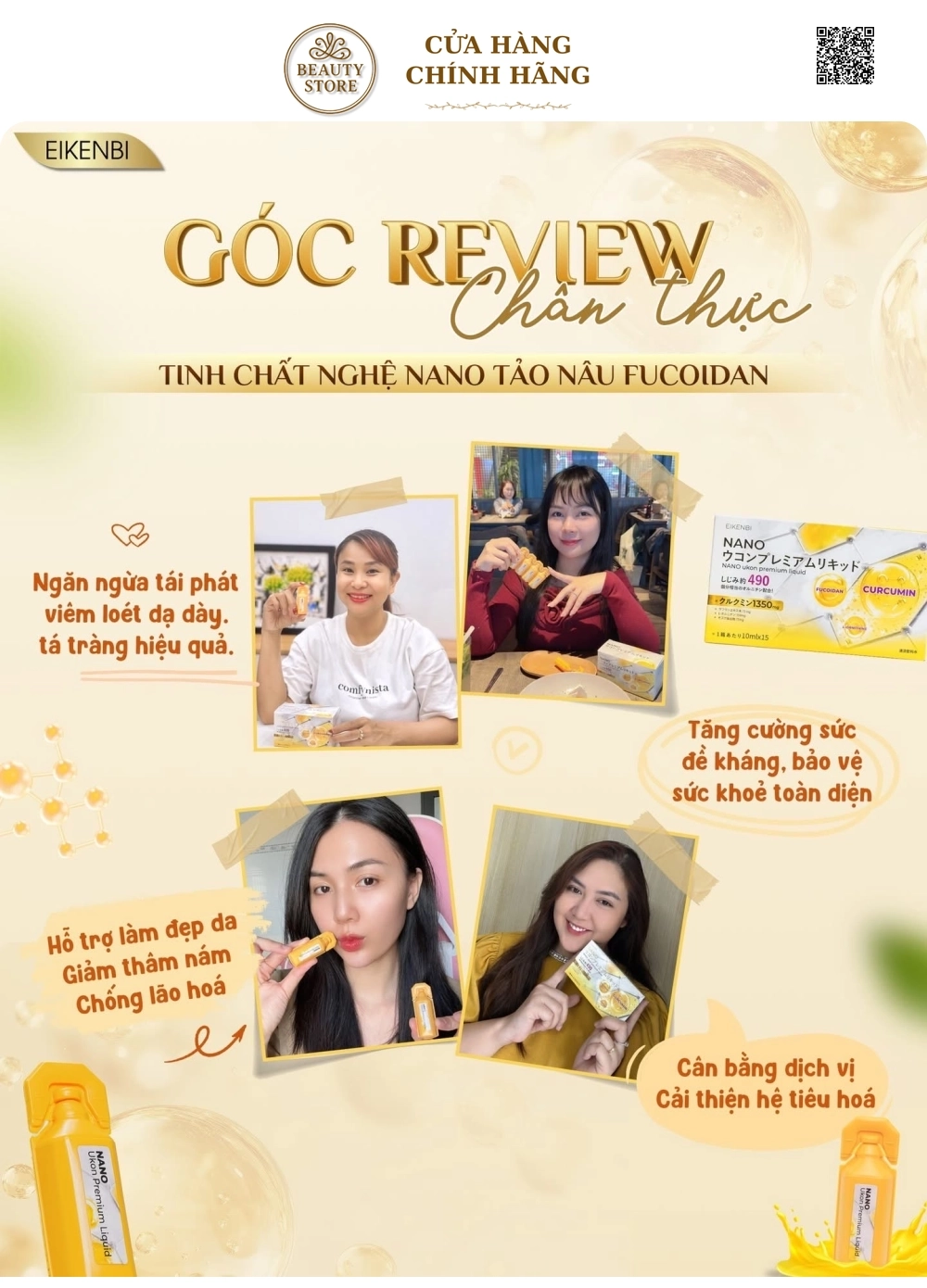 Tinh nghệ Nano Ukon Fucoidan cao cấp phát huy công dụng tối đa gấp 2000 lần so với các sản phẩm nước nghệ khác trên thị trường. Không chỉ cải thiện làn da khỏe mạnh và nâng tầm nhan sắc mà còn góp phần phòng ngừa, hỗ trợ điều giảm bệnh lý nghiêm trọng và bảo vệ sức khỏe.