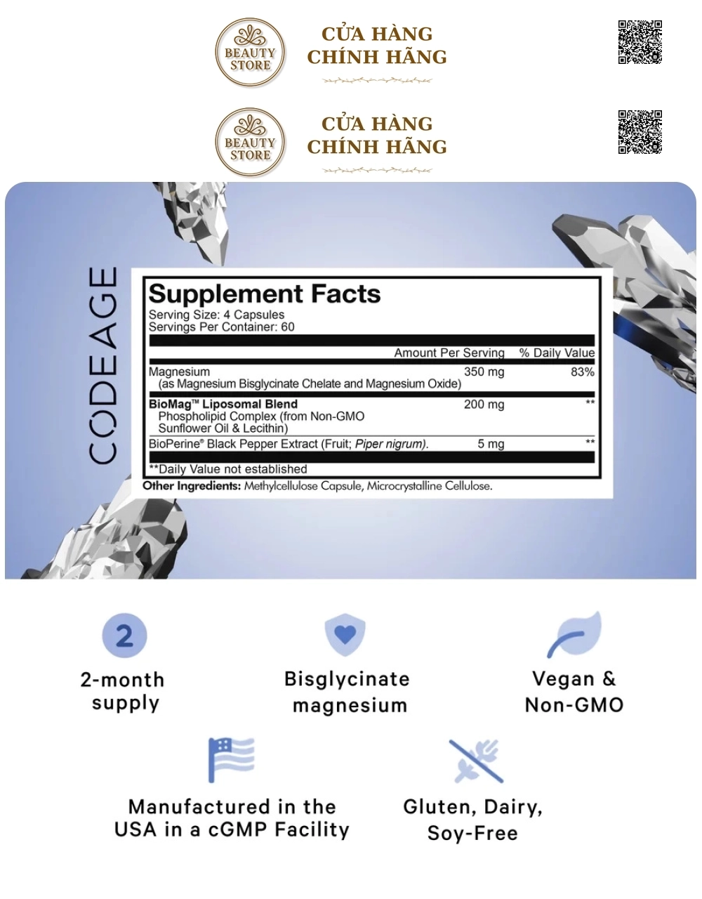 Giao hàng rất nhanh, tem nhãn chính hãng . Mua có tặng kèm quà. Magie của Codeage thì khỏi bàn ạ