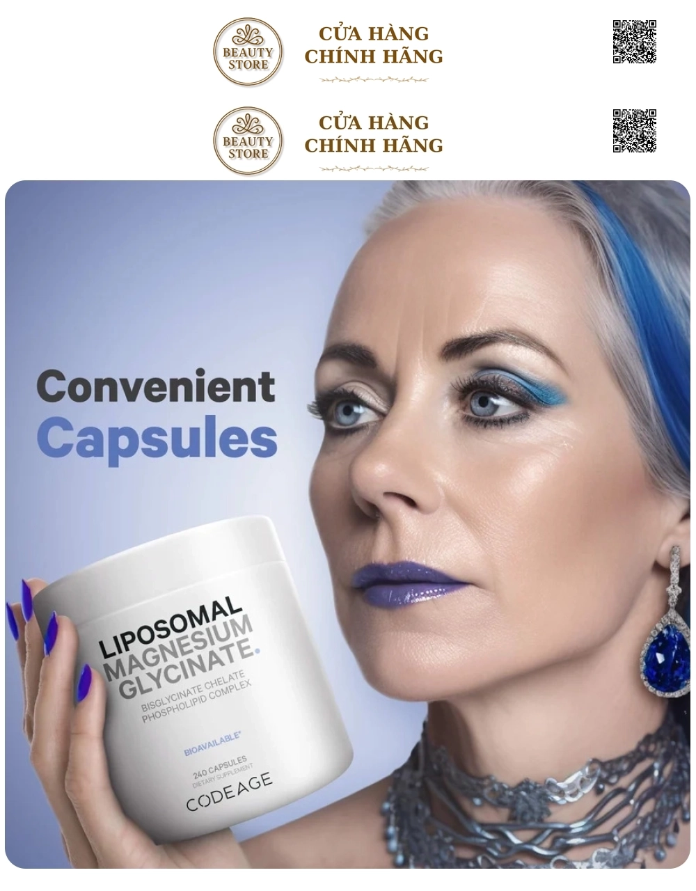 Viên bổ sung Magie CodeAge Liposomal Magnesium Glycinate Từ Mỹ 240 Viên