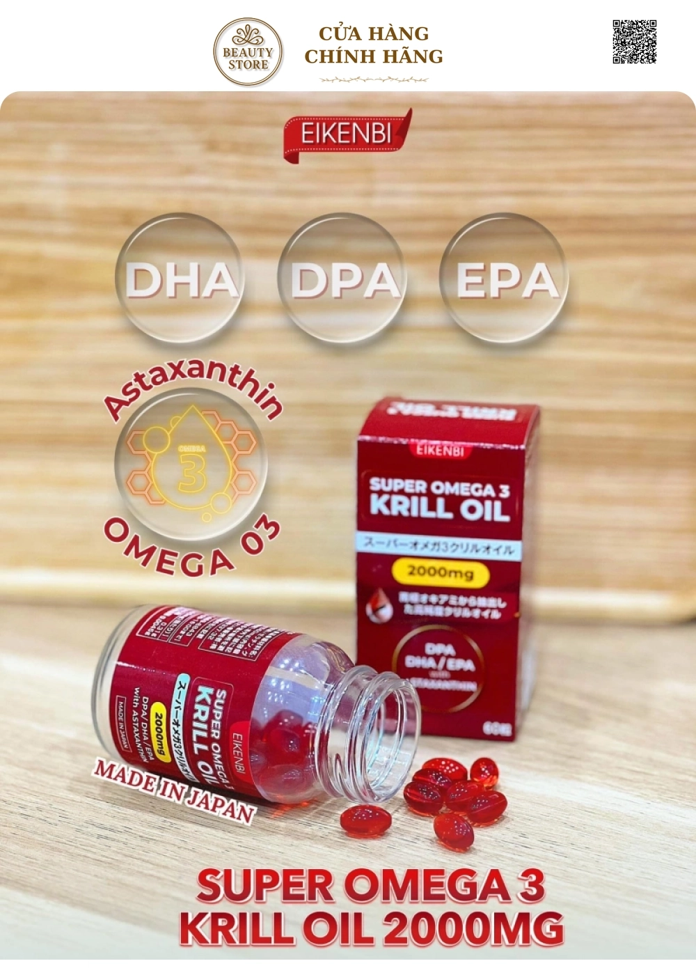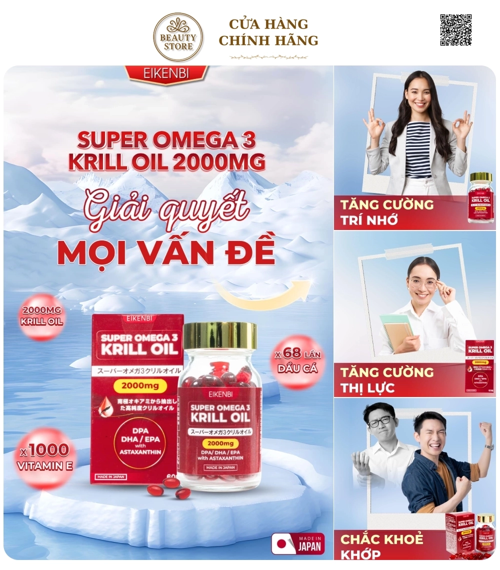 Xem & Mua NgayViên Uống Dầu Nhuyễn Thể Eikenbi Super Omega 3 Krill Oil 2000mg Từ Nhật Bản (60 Viên)