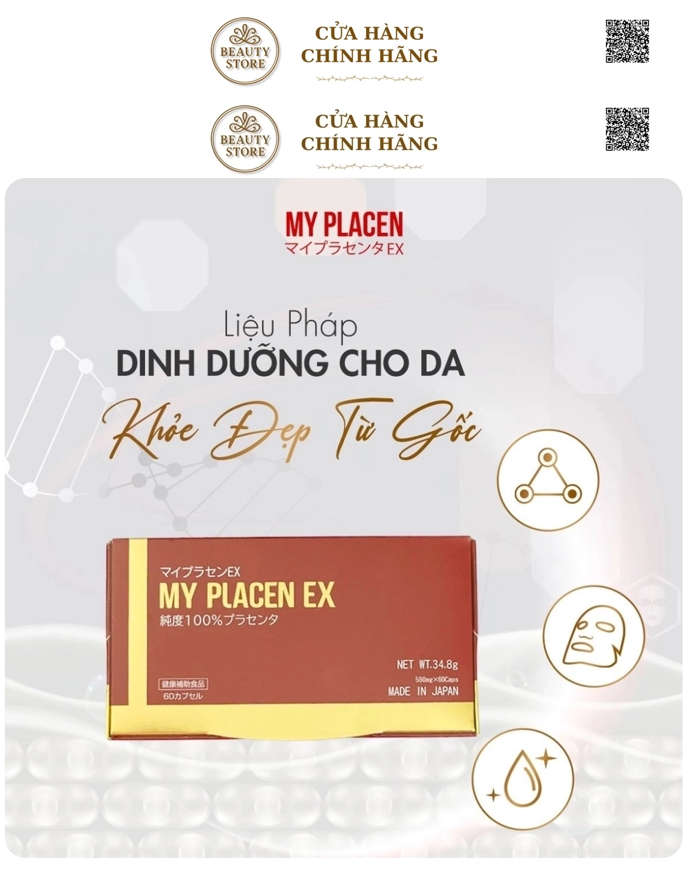 My Placen Ex là viên uống Tinh Chất Tế Bào đặc biệt trên thị trường hiện nay với hàm lượng 580mg viên, chứa hơn 200 cytokin và 5 yếu tố quan trọng nhất trong việc tái tạo da và ngăn ngừa lão hóa. Viên uống này được thiết kế để sử dụng hàng ngày với liều lượng 23 tuần, giúp khách hàng cảm nhận rõ rệt sự cải thiện trên làn da và cơ thể. Sản phẩm không phải là , do đó không yêu cầu liệu trình hoặc ngừng sử dụng. Khách hàng có thể tiếp tục sử dụng viên uống này mỗi ngày mà không gây tác dụng phụ nào.